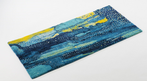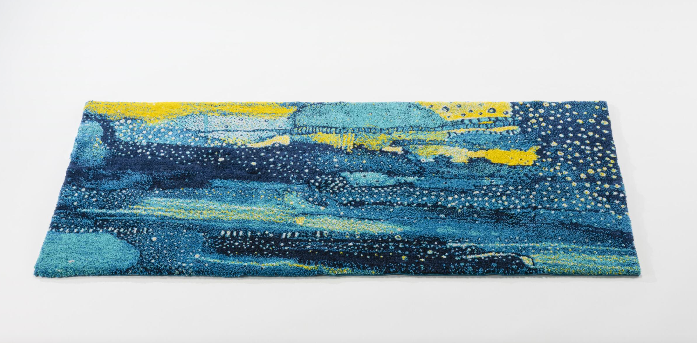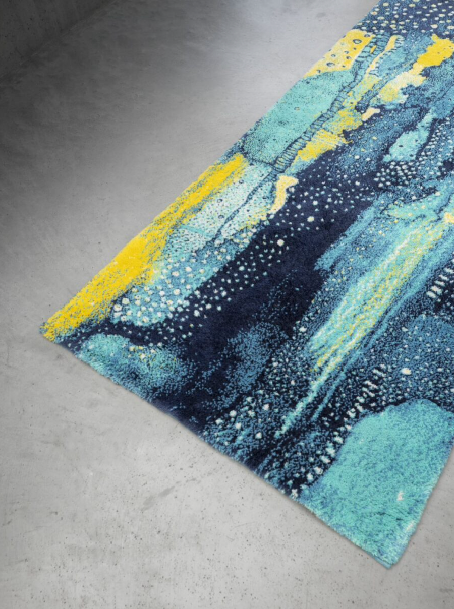 The yarn is dyed before using it to make a towel or a rug, creating an opportunity to weave patterns in several colors.