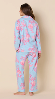 This pajama set has a roomy, comfortable fit. Most people find our flannel PJs to be larger than expected. This allows for a comfy fit and room for expected cotton sleepwear shrinkage, which is approximately 1" in width and length.