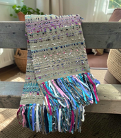 Handmade cotton chenille throw finished with a lush fringe of yarn and ribbon.