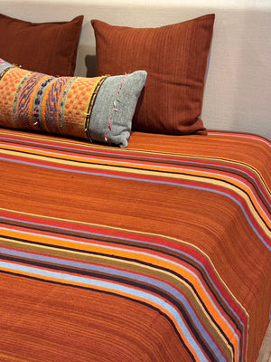 Warm Terracotta & Green wool bedspread by Sergio Martinez
