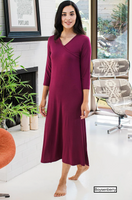 The Haley Long Gown has a flattering crossover front, 3/4 sleeves and side slits.