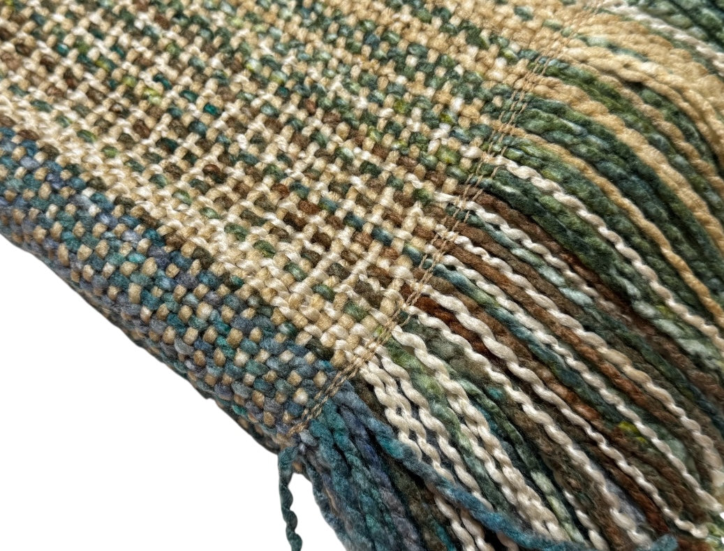 Our new Dover, blanket stripe contrasts bold scale, refined texture and subtle colors for a look that works in any room setting. Woven in New Hampshire with fringe on two sides, Dover is hand washable and measures 48" x 72".