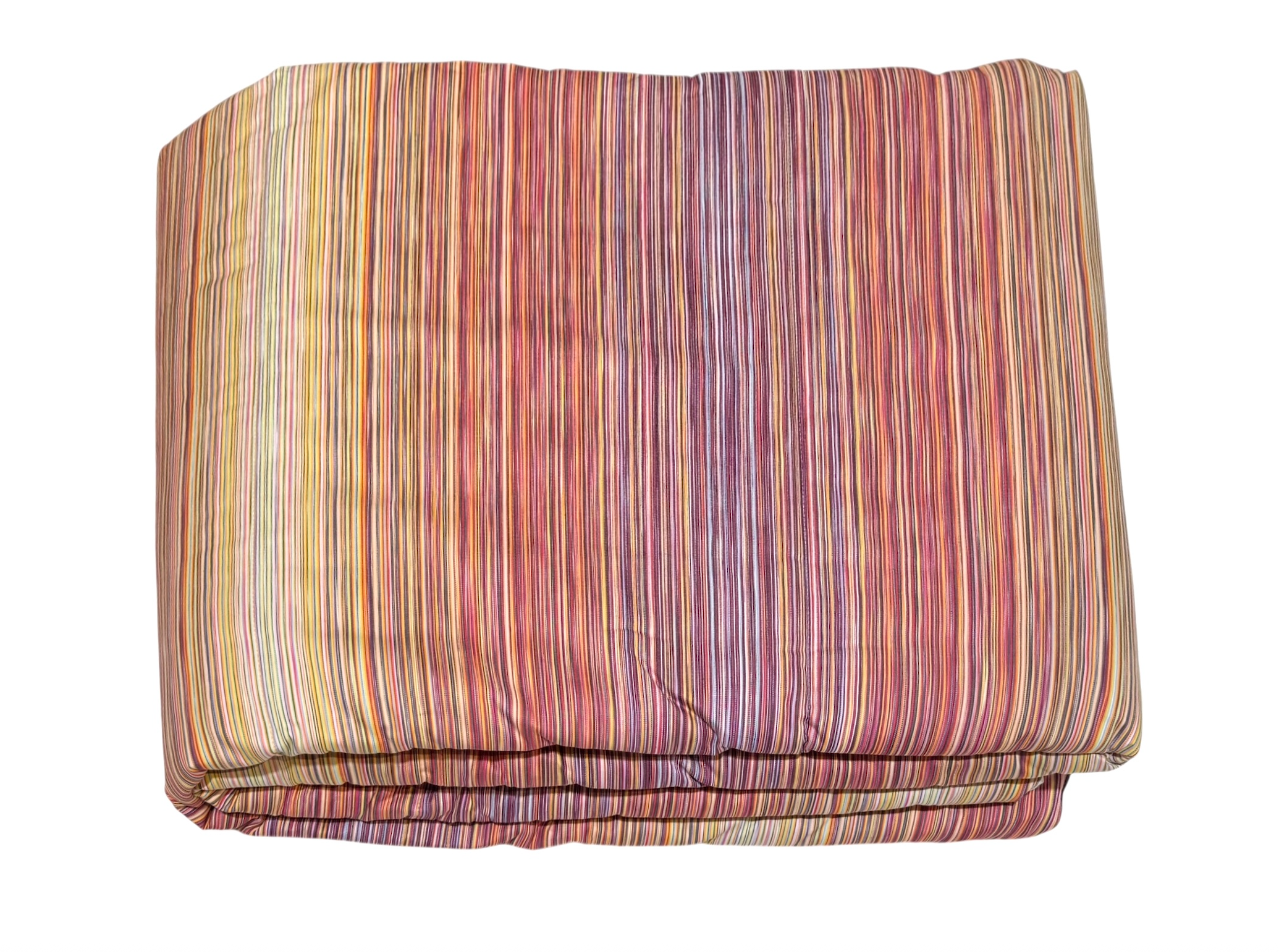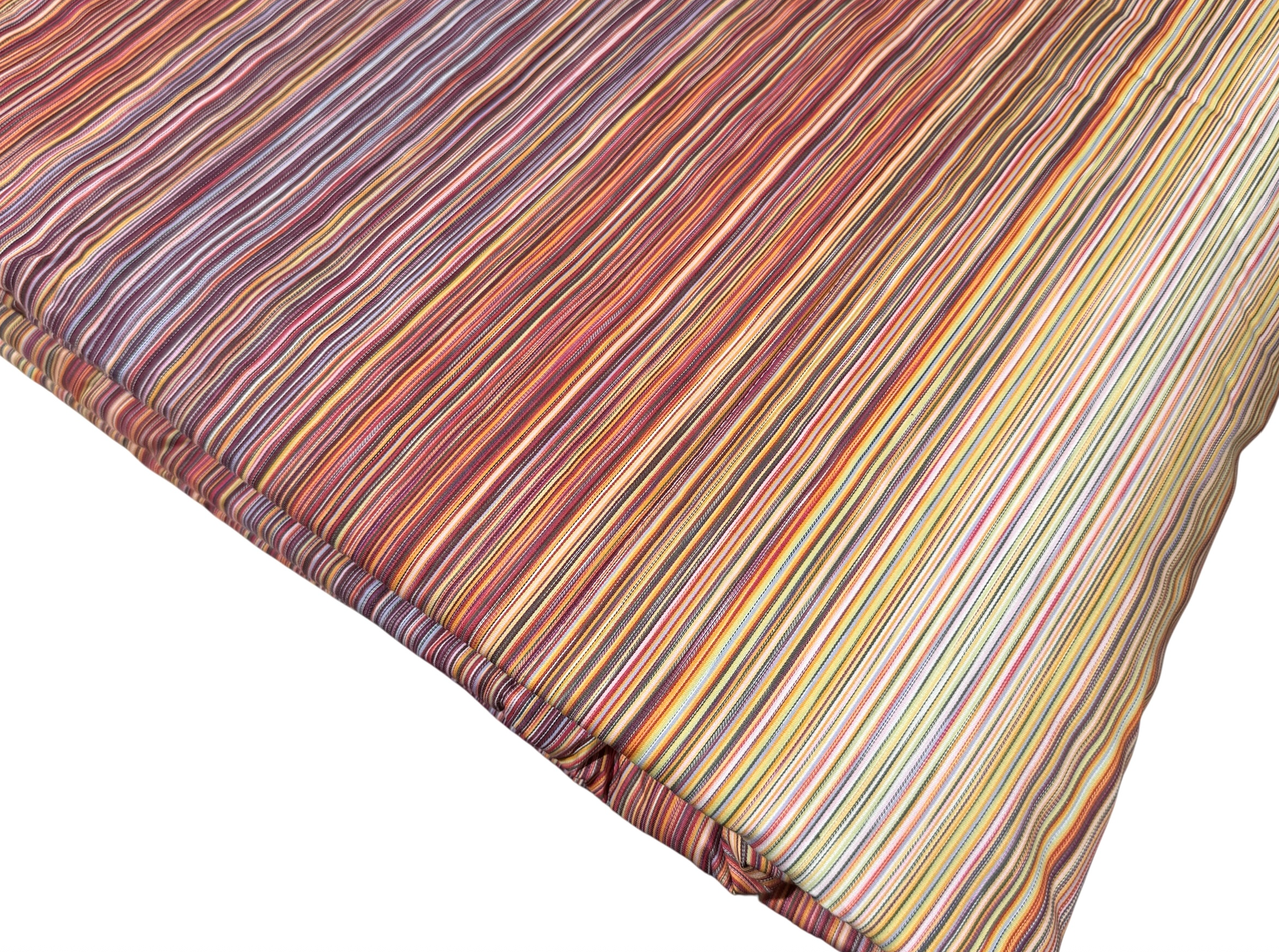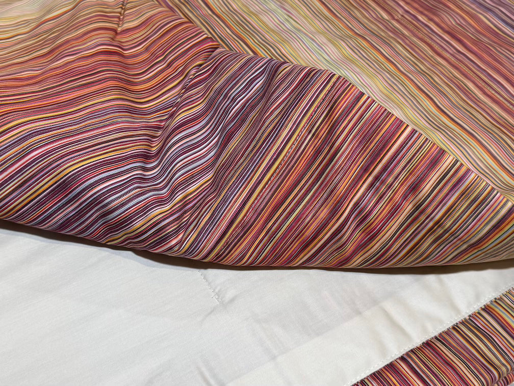 Yarn-dyed cotton twill with multicolored micro-stripe motif.