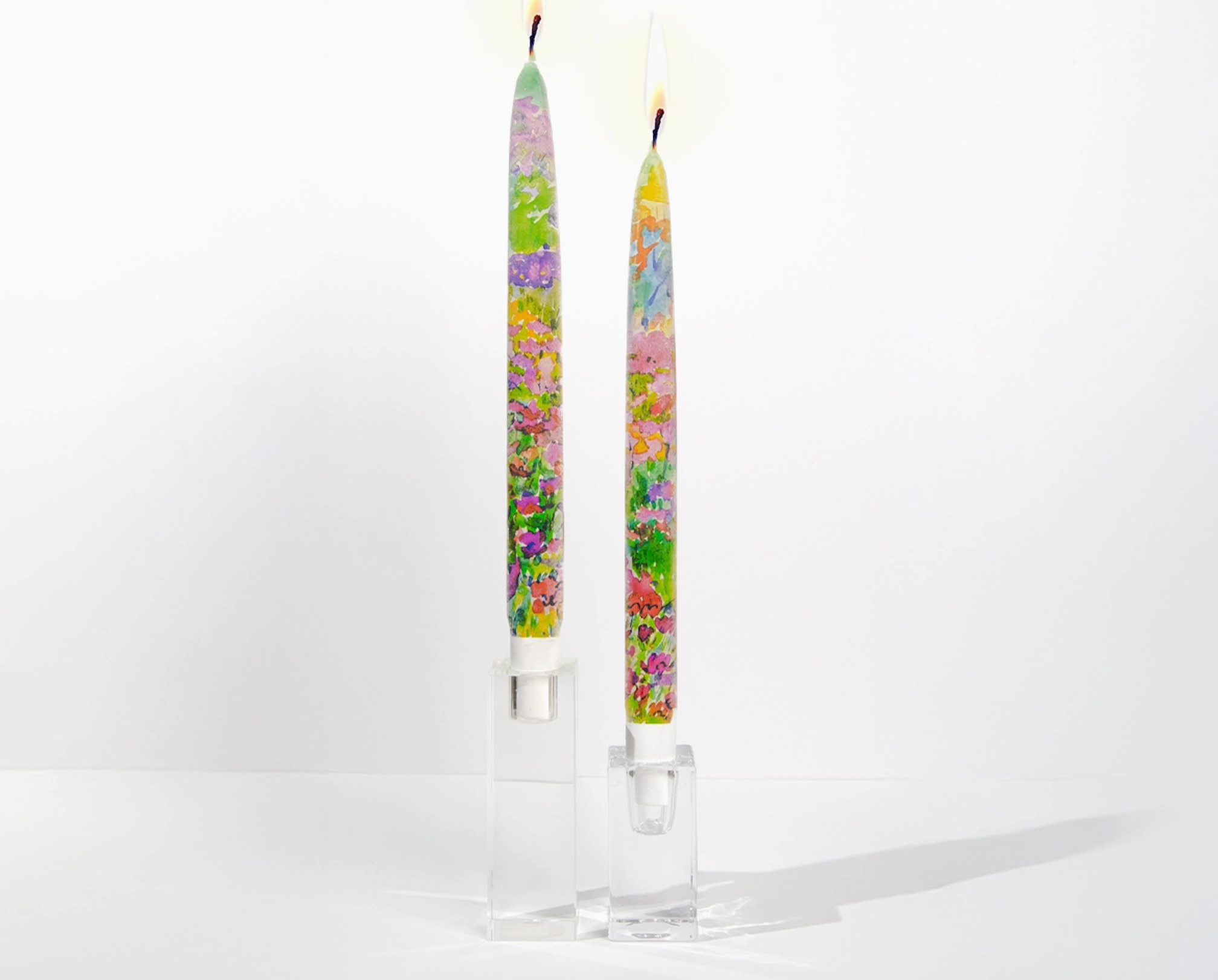Discover our new collection of taper candle sets, each featuring vibrant, timeless artwork on both sides. Flat for a unique design, they’re drip-resistant, smokeless, and clean-burning. These one-of-a-kind candles bring art and elegance to any space.