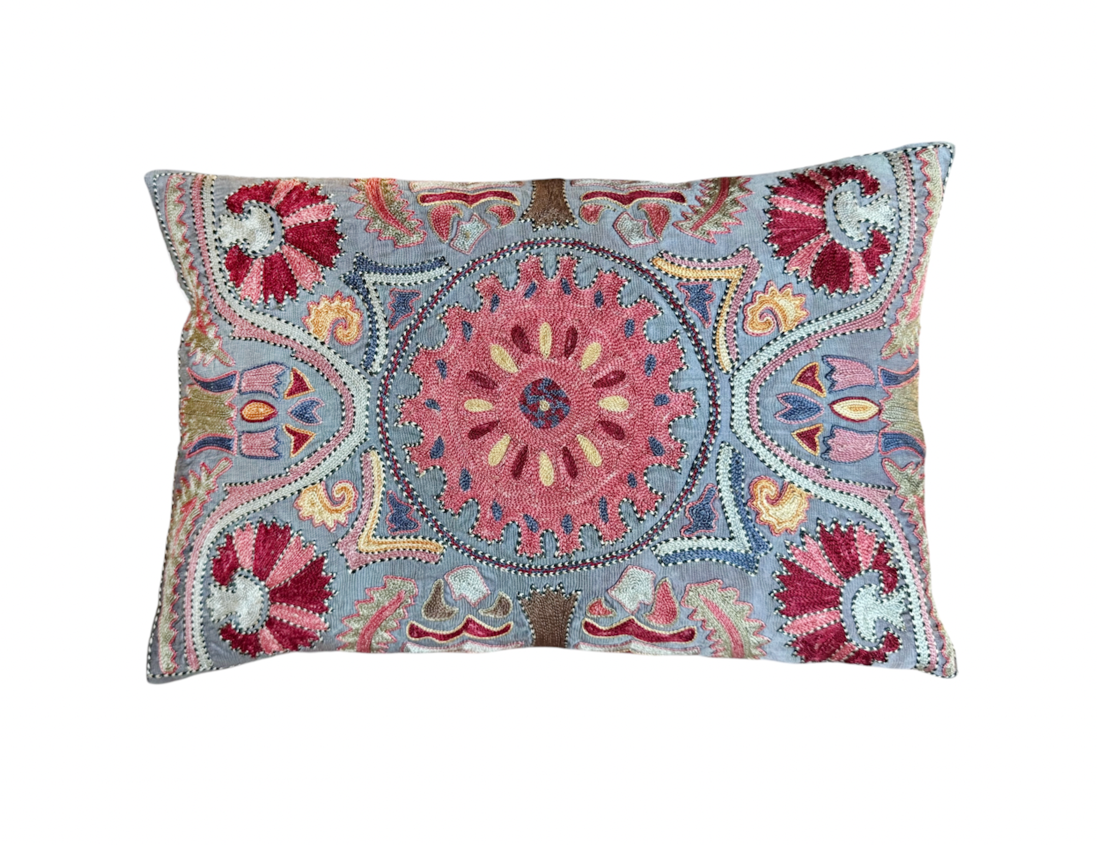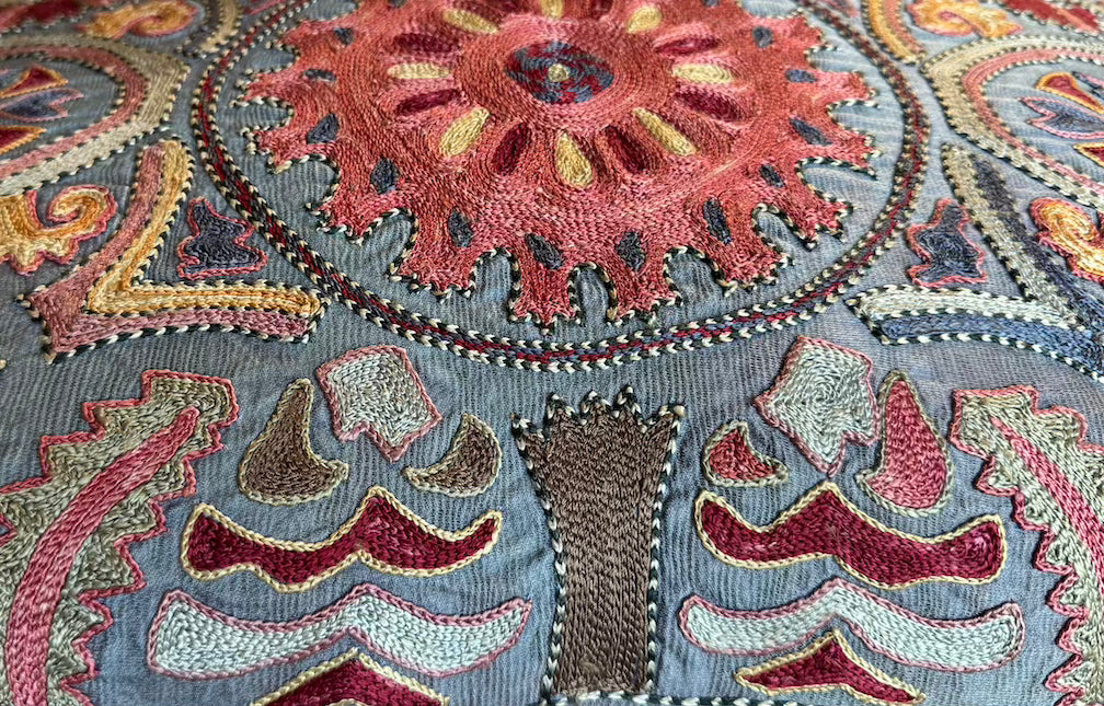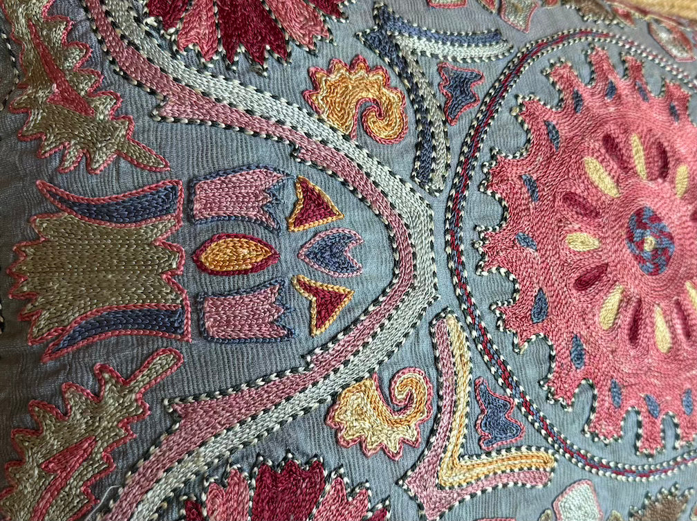 Hand-embroidered Silk Suzani pillow from Uzbekistan U-2