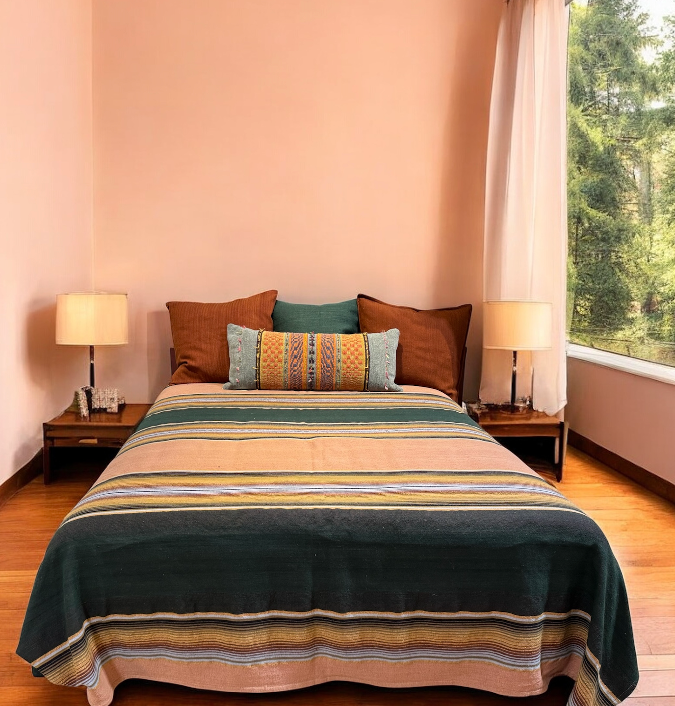 Warm Terracotta & Green wool bedspread by Sergio Martinez