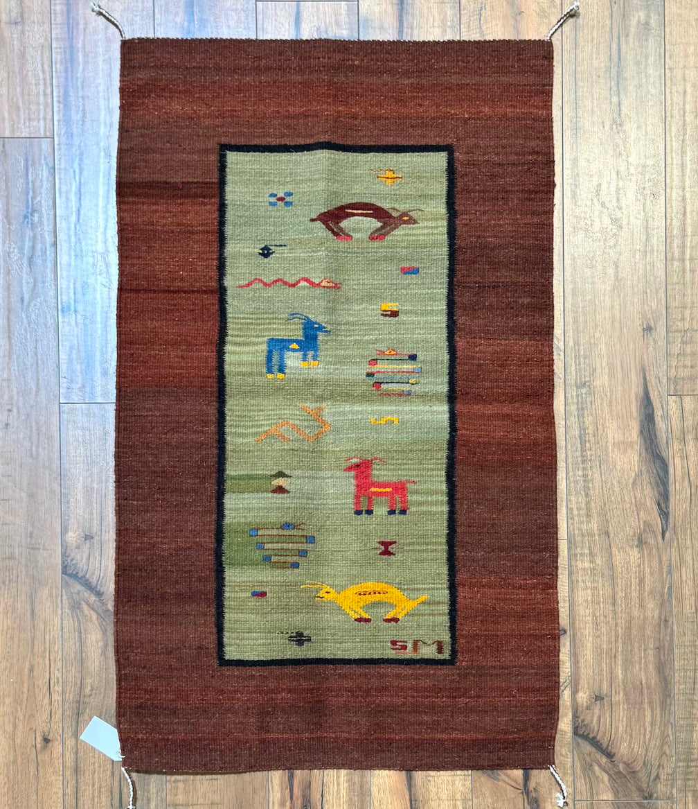 Sergio Martinez 2481 "Borde Gabbeh Brown/Green" rug (2'x3')