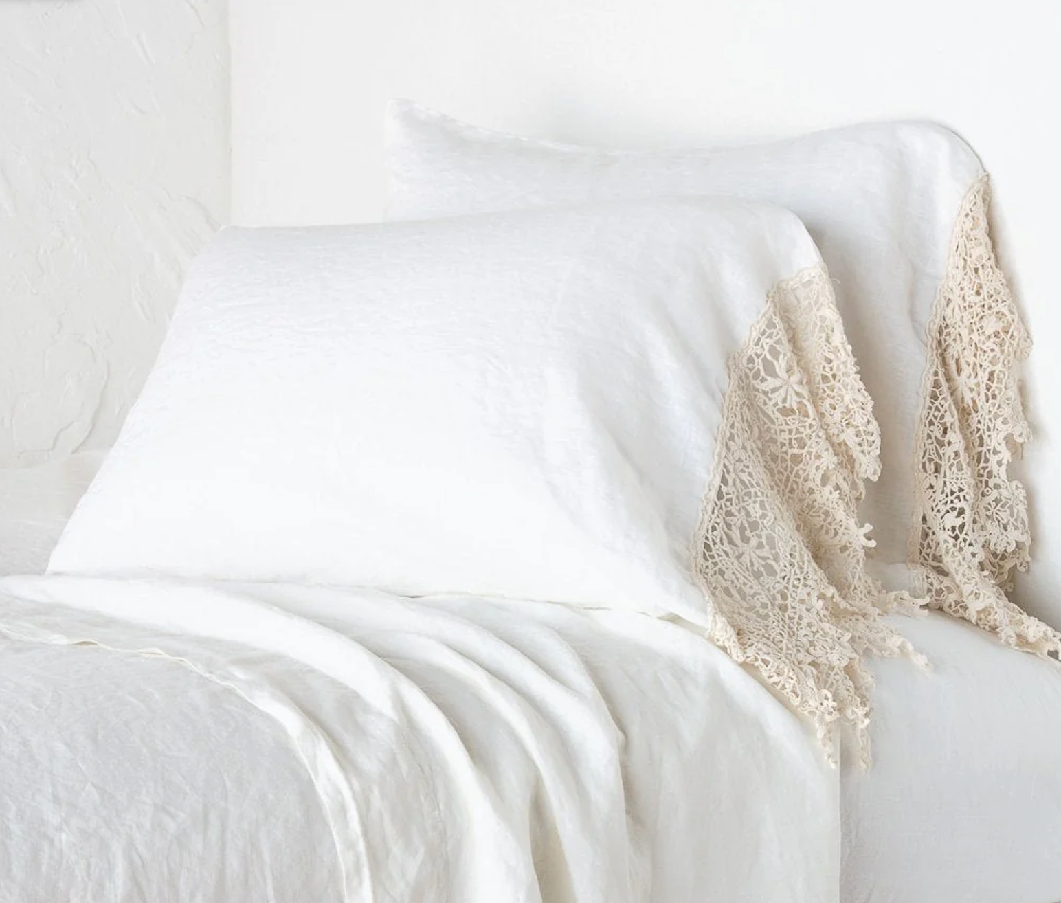 Our garment-dyed Linen Pillowcases embody easy elegance. Finished with a 4" cuff or cotton lace trim, our heirloom-quality cases become softer with every wash, and remain cool and breathable during the warmer months.