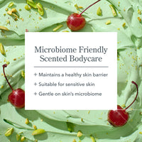 Rich goat milk and shea butter deeply hydrate and help repair the skin, while decadent notes of pistachio nougat, dark cherry, and sugar glacé create a truly indulgent experience.