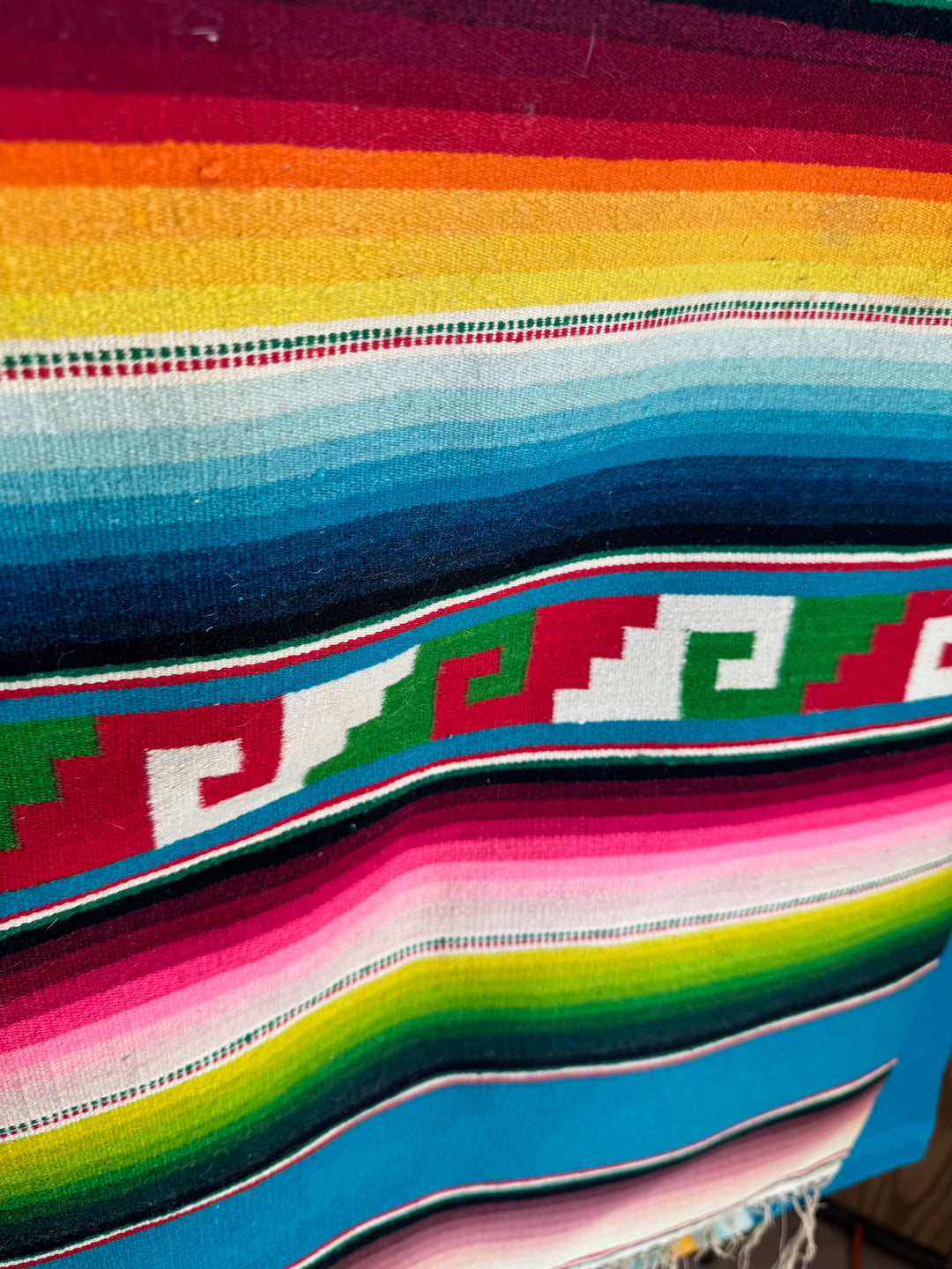 The Saltillo runner, also known as the Saltillo sarape, stands as a masterwork of Mexican weaving tradition. Handcrafted by descendants of the Tlaxcalan people in Saltillo, Coahuila, these blankets are renowned for their intricate, fine weaving. Unlike mass-produced versions such as the sarape or Falsa, Saltillo runners are painstakingly created by hand, resulting in a lighter, thinner fabric with unparalleled attention to detail.