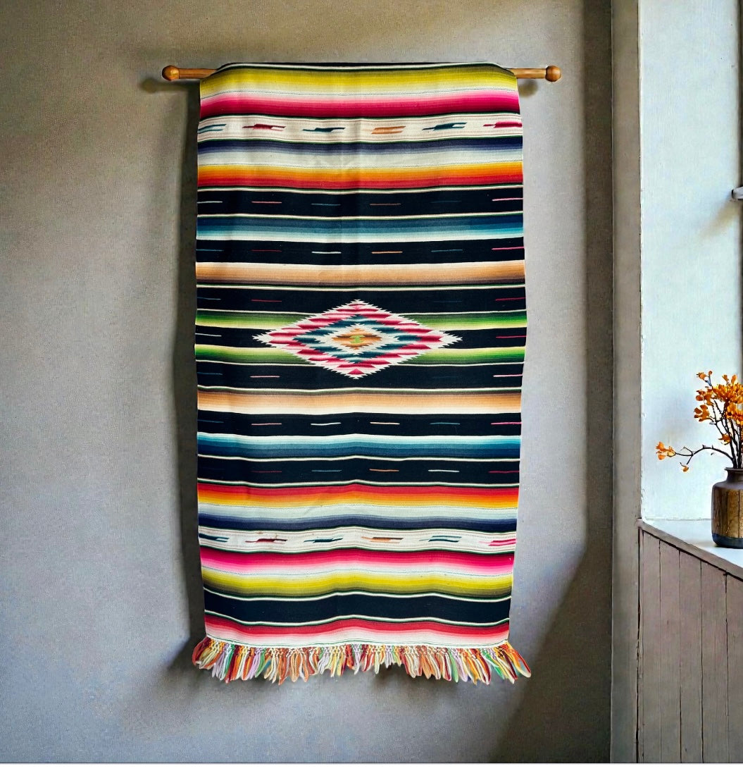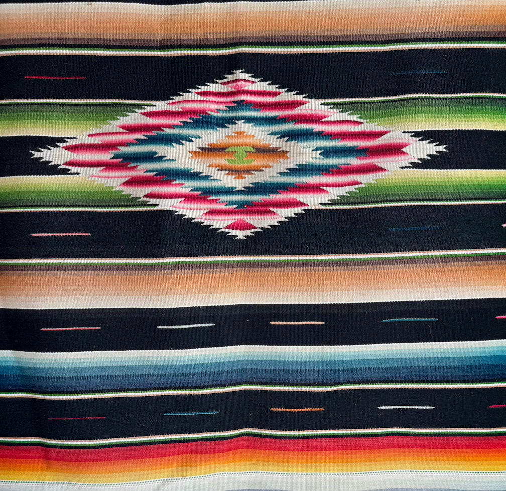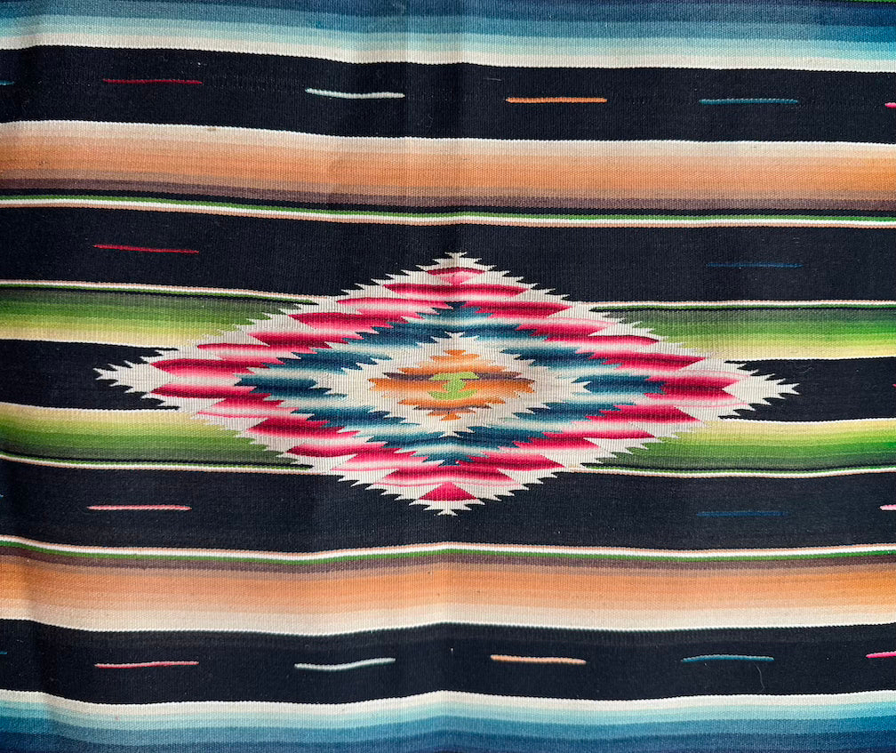 The Saltillo runner, also known as the Saltillo sarape, stands as a masterwork of Mexican weaving tradition. Handcrafted by descendants of the Tlaxcalan people in Saltillo, Coahuila, these blankets are renowned for their intricate, fine weaving. Unlike mass-produced versions such as the sarape or Falsa, Saltillo runners are painstakingly created by hand, resulting in a lighter, thinner fabric with unparalleled attention to detail.
