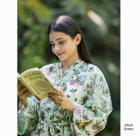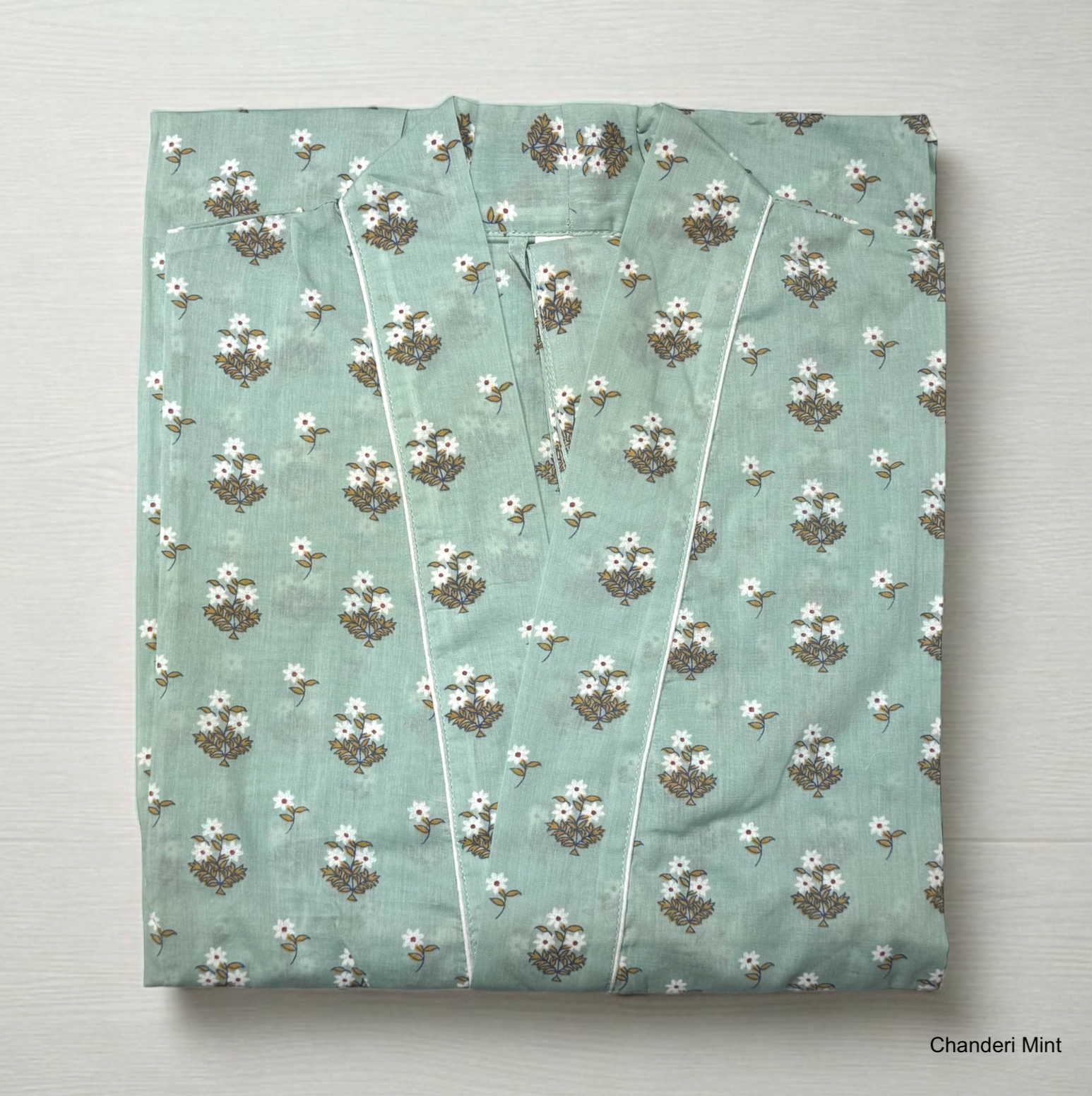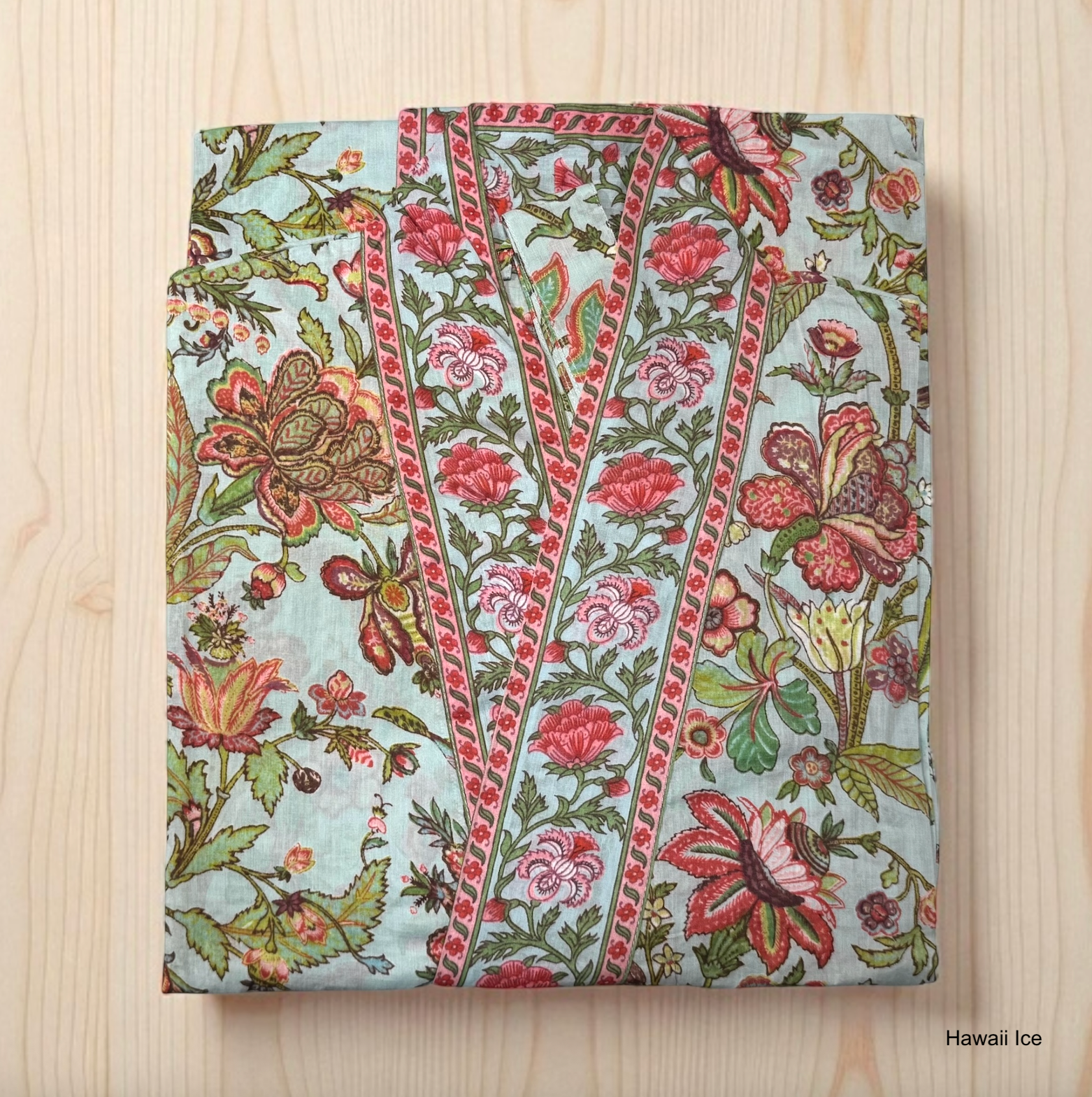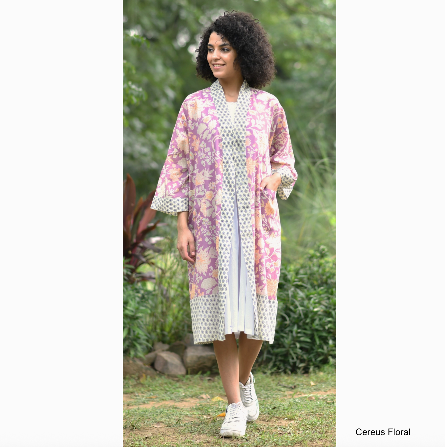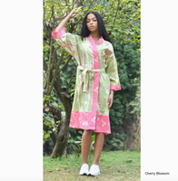 100% organdy cotton lightweight kimono robes from India. These are hand printed designs, made only with organic materials using ecologically sustainable techniques.