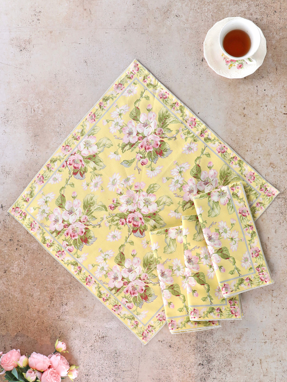 April Cornell Apple Blossom Yellow Set of 4 Napkins