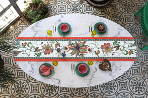 The vibrant and detailed print has been digitally printed onto a bleached base cloth of 100% cotton. Every tabletop item has been designed for regular use; however, to keep your tablecloth, runner or napkins looking their best, please follow these instructions: