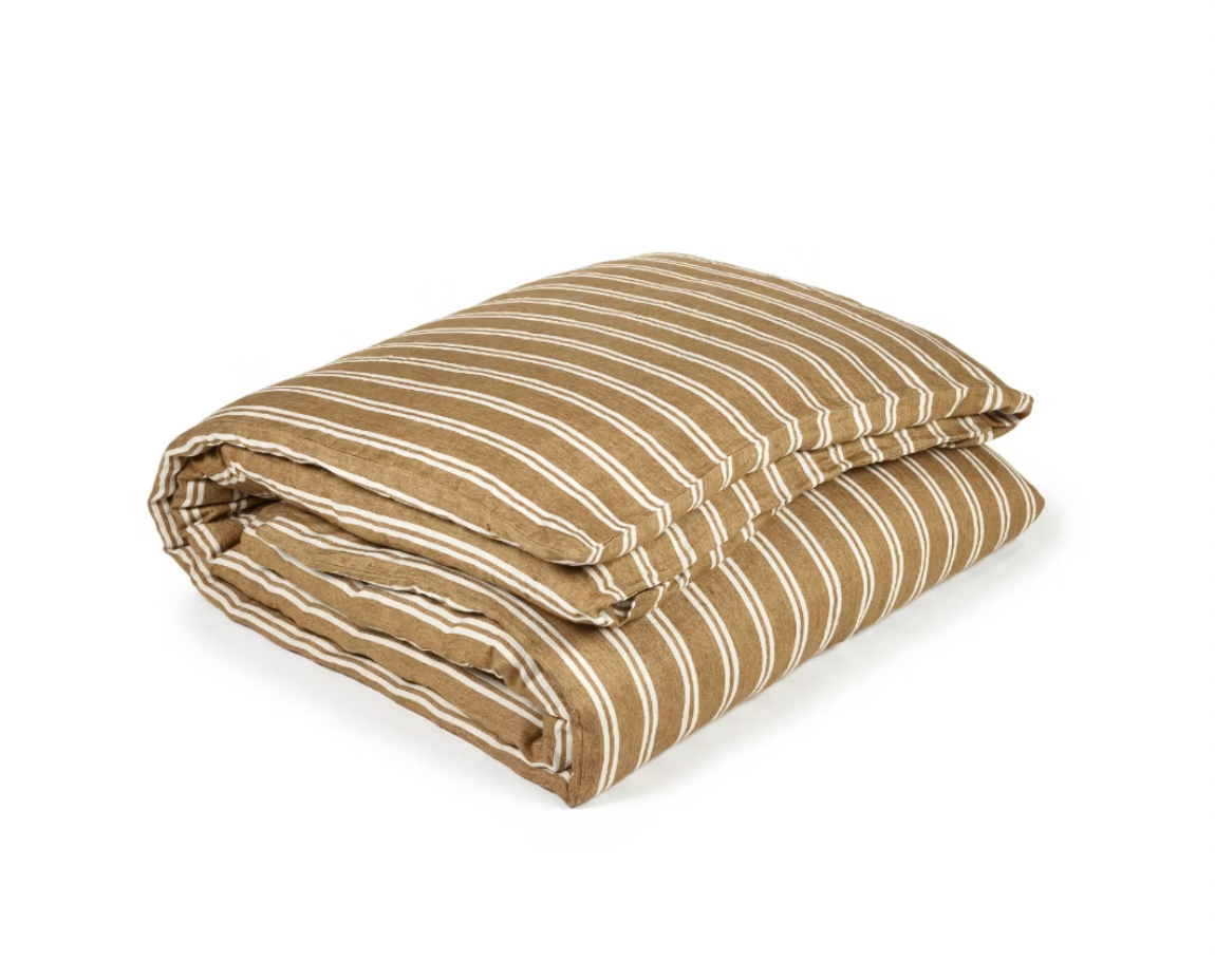 Our quintessential top of bed fabric is back in a new design. A medium weight, tightly woven twill, in a bronze and bone allover stripe. It’s simple, yet an eye catcher!