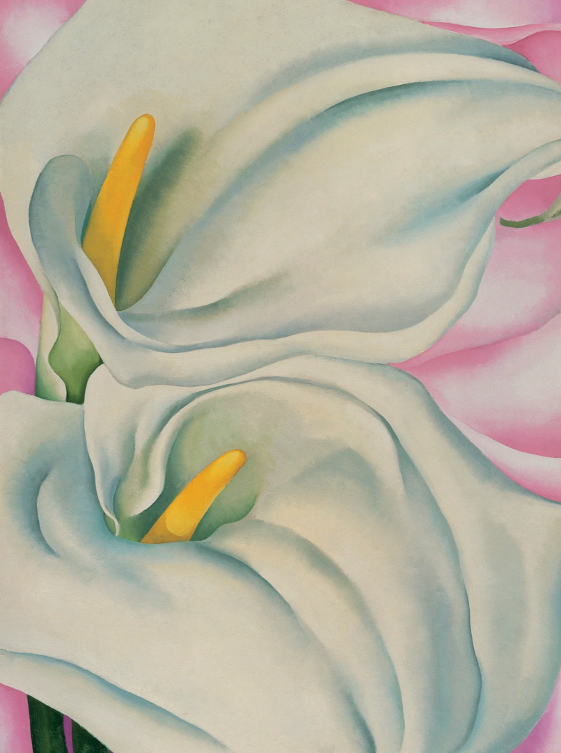 Georgia O’Keeffe once said, “What is my experience of the flower if not color?” The waves of softly blended hues in these calla lilies show off her mastery of floral painting. O’Keeffe’s close-up, large-scale paintings of flowers, begun in the mid-1920s, became her signature motif.
