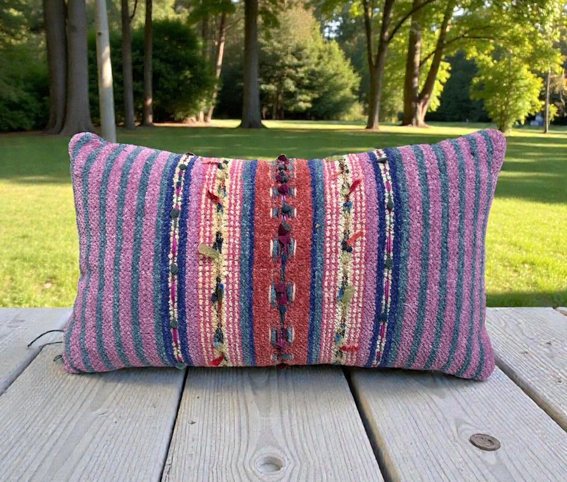 Gretel Underwood "Dos Lados Rosa y Violeta" pillow handmade in Santa Fe, NM
