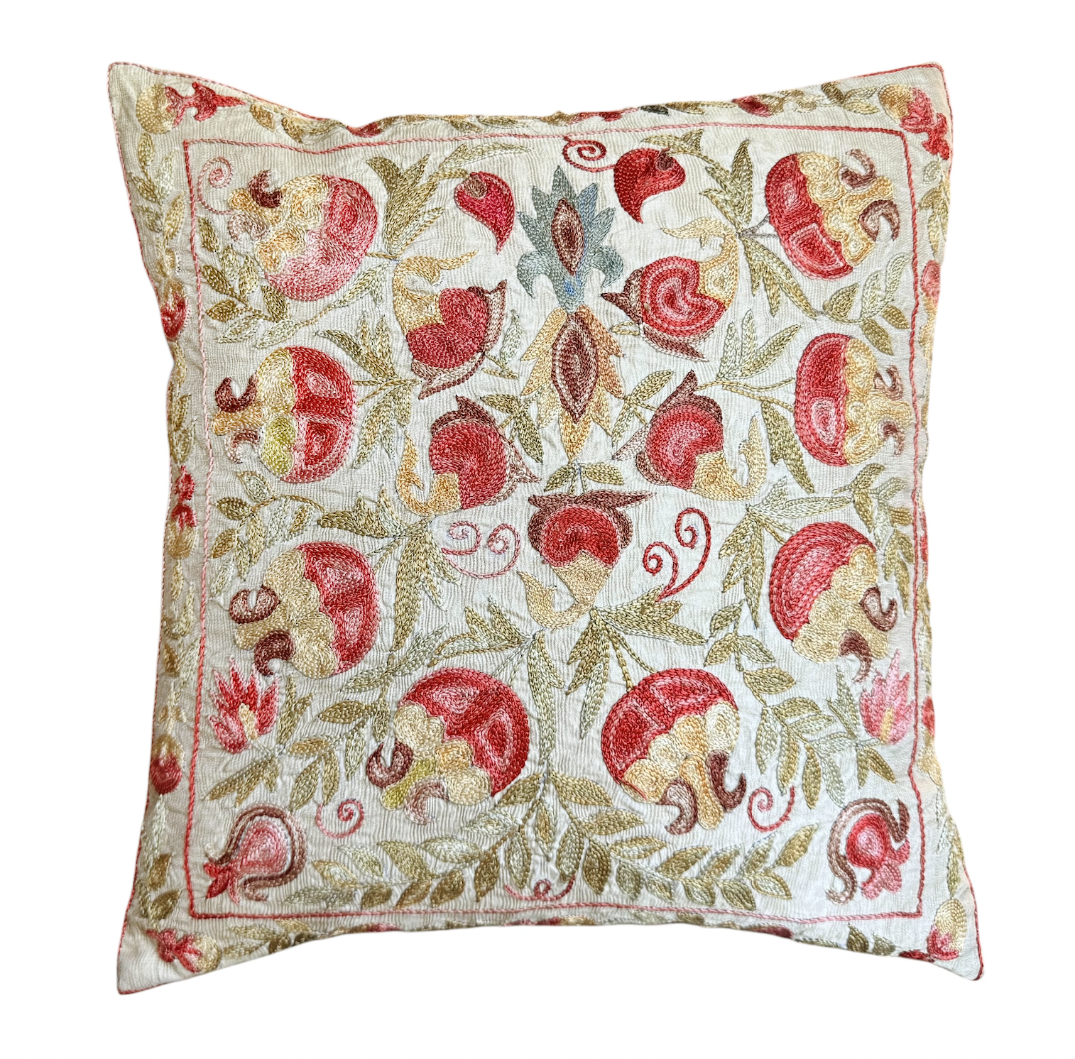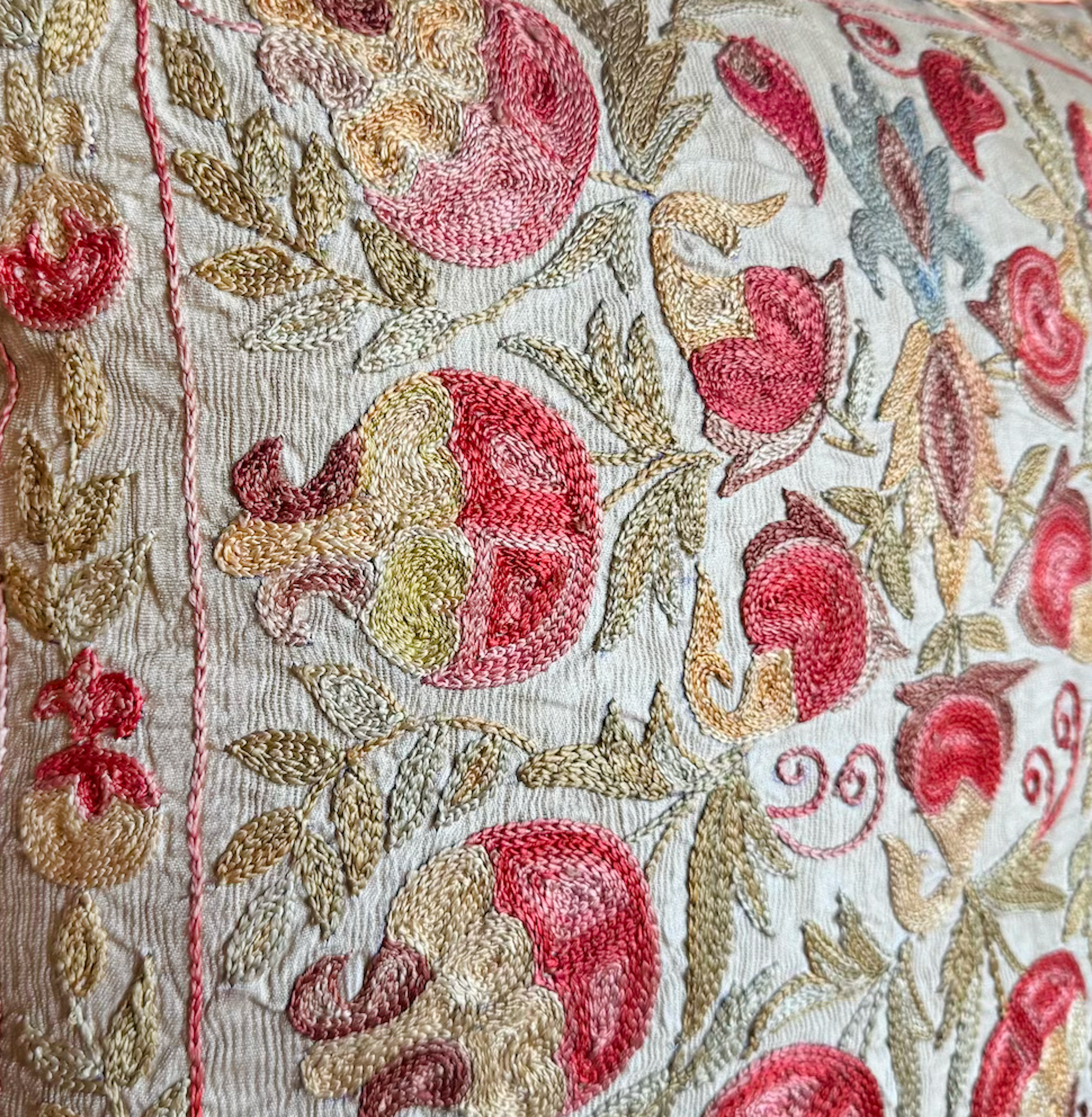 Hand-embroidered Silk Suzani pillow from Uzbekistan U-15