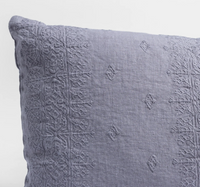 - For euro, embroidered midweight linen backed in midweight linen with knife edge, linen tie closure.
