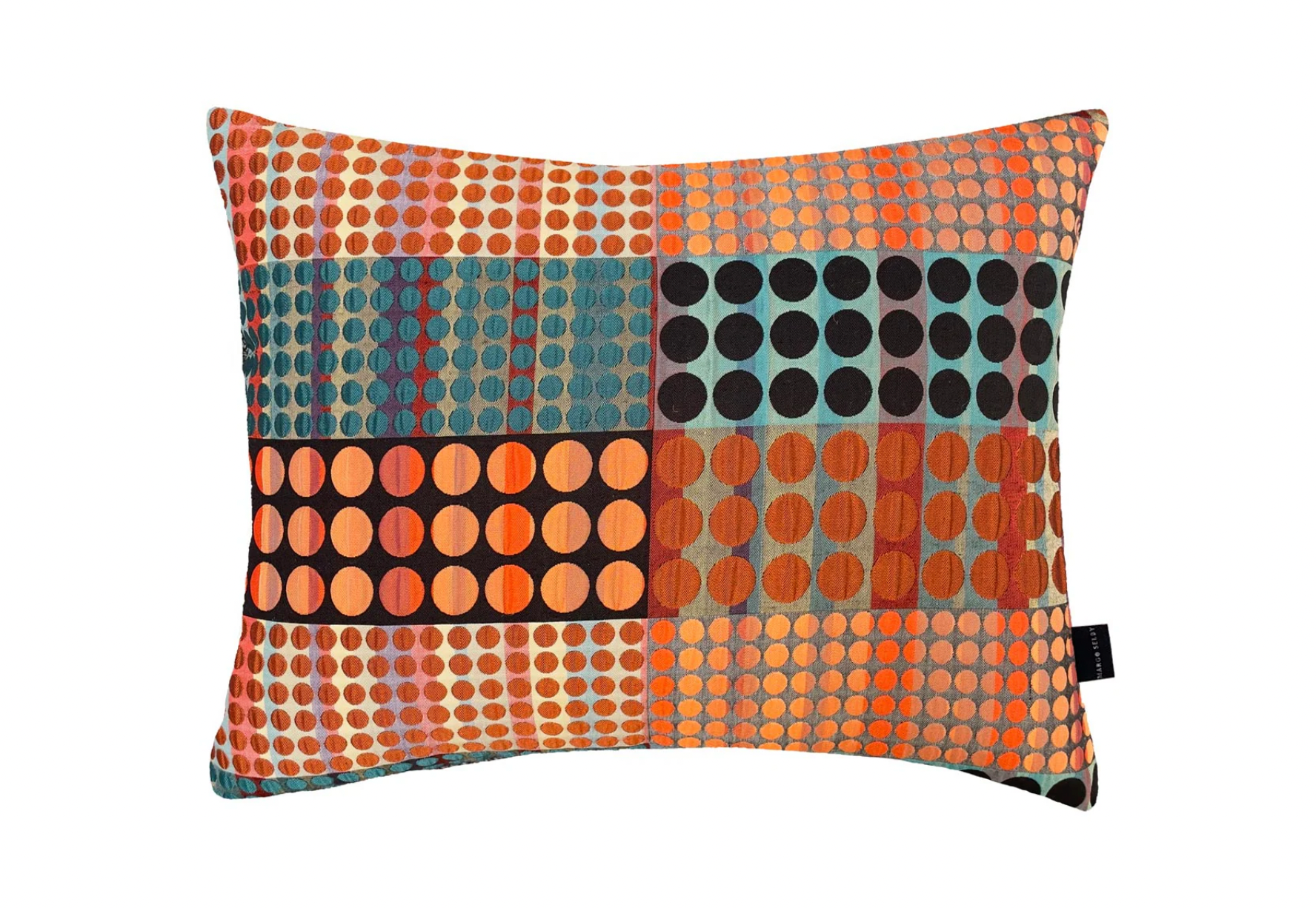 The textural quality the Jude cushion is achieved through a double-weave process; interwoven mixed fibres, including a heat-shrink yarn, create a tension in the cloth for an embossed surface – a Margo Selby signature structure. The raised pockets were originally inspired by the structure of bubble wrap.