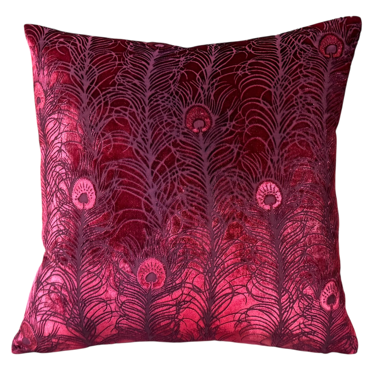 Kevin O'Brien Peacock Feather Raspberry Pillow