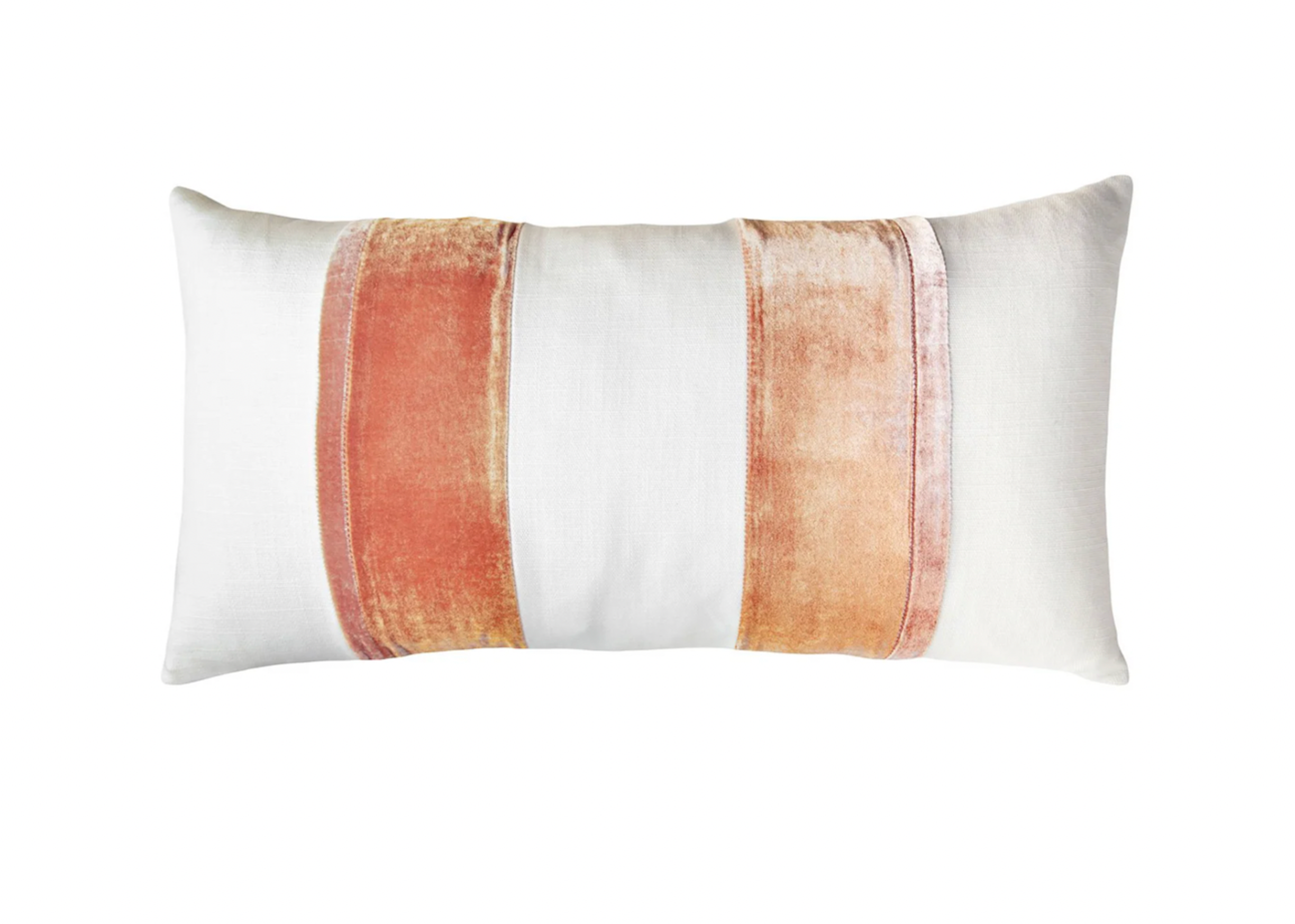 Kevin O'Brien Stripe Oblong pillows take solids to another level with coordinating pops of colorful velvet.
