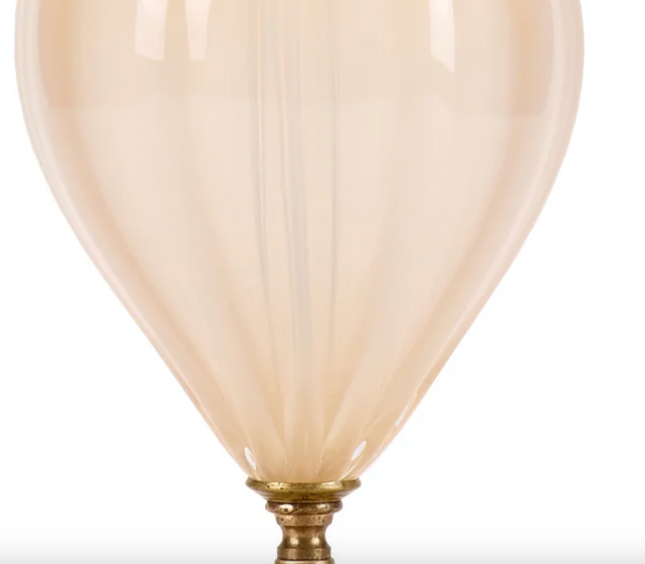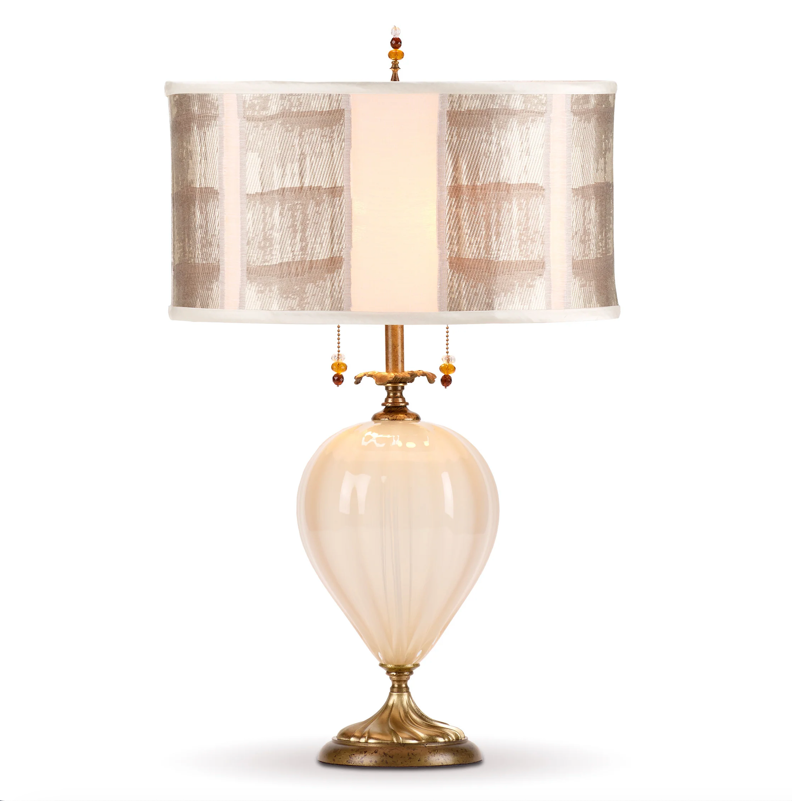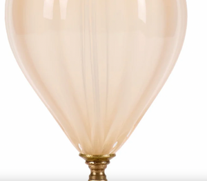 Mayzie has creamy blown glass. Its simple oval shade has a contemporary neutral design in cream and gray/beige tones. Mayzie has a double bulb socket and is finished with beaded pulls and a beaded finial.