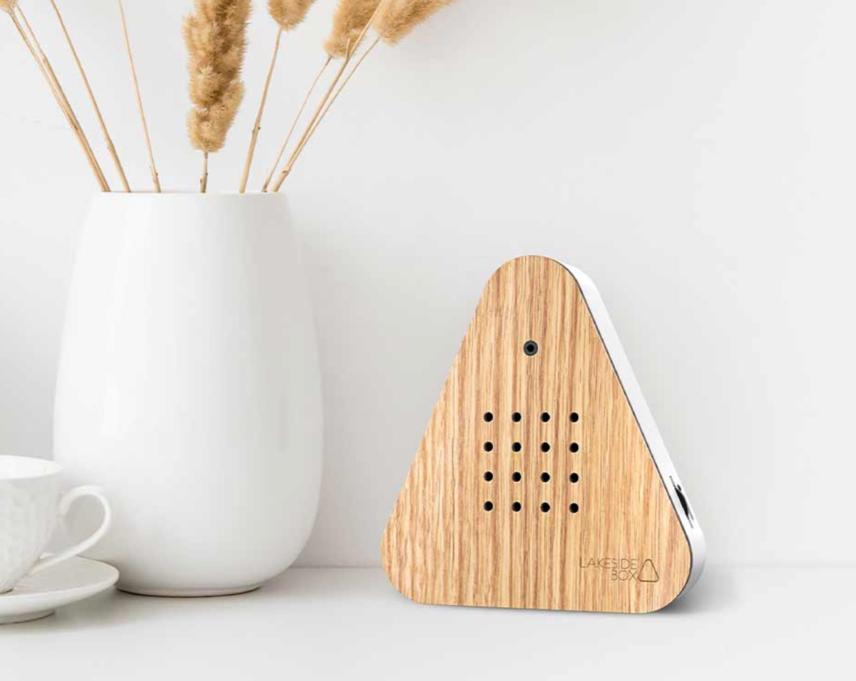 You activate the nature sounds as you pass by; if no new impulse follows, they gently fade out after two minutes. Whether at home or in the office, in the bathroom or hallway, you can place your Lakesidebox anywhere or simply hang it on the wall. Thanks to the rechargeable battery, it can be quickly and conveniently charged.