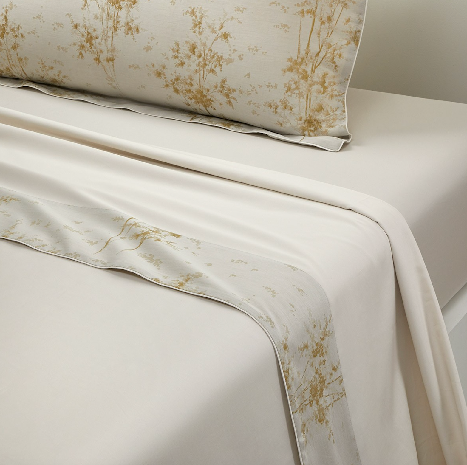 Damask sateen is crafted from superior-quality cotton. Luminous and refined, it is prized for its softness, delicately silky appearance, and supple texture, adding sophistication and comfort to home linens.