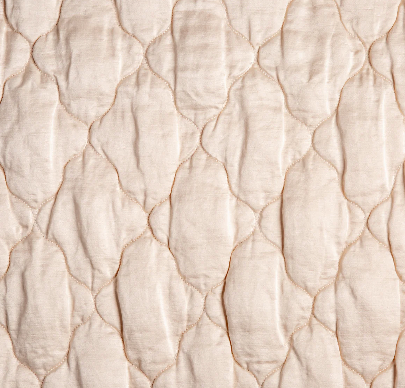 Shimmering and fresh, our Luna Shams glow like their namesake. With a gentle diamond pattern quilted on silk charmeuse, each curve and fold catches the light. Edged with an understated petite flange, backed with unquilted silk charmeuse, and closed with silk charmeuse ties, these garment dyed shams layer just as easily with our silks as they do with our cottons and linens.