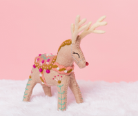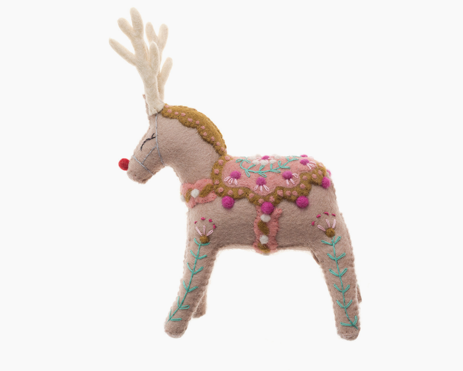 Add these uniquely designed reindeer to the top of your mantel this holiday season. They are hand felted and embroidered by artisans in Nepal. 10" tall. 100% felted wool.
