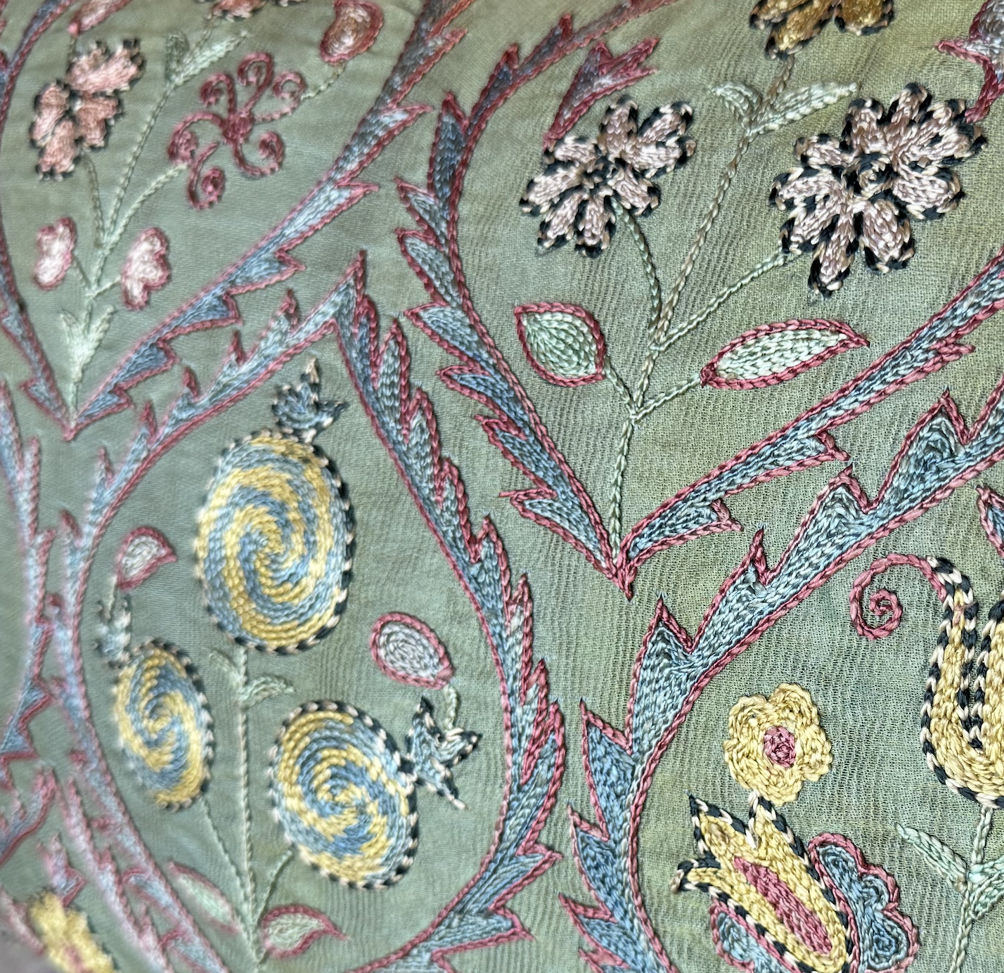 Hand-embroidered Silk Suzani pillow from Uzbekistan U-1