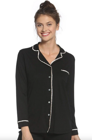 Sleep in classic sophistication with your new pj set. Crafted from a luxurious blend of pima cotton, you'll love the softness and texture of the fabric against your skin. The long-sleeved top features a ruffled satin trim, adding a touch of femininity and modern update. Full length pants are perfect for taller figures. What's not to love? Snuggle up tonight in the pajamas you deserve. Make Every Night a Special Night.