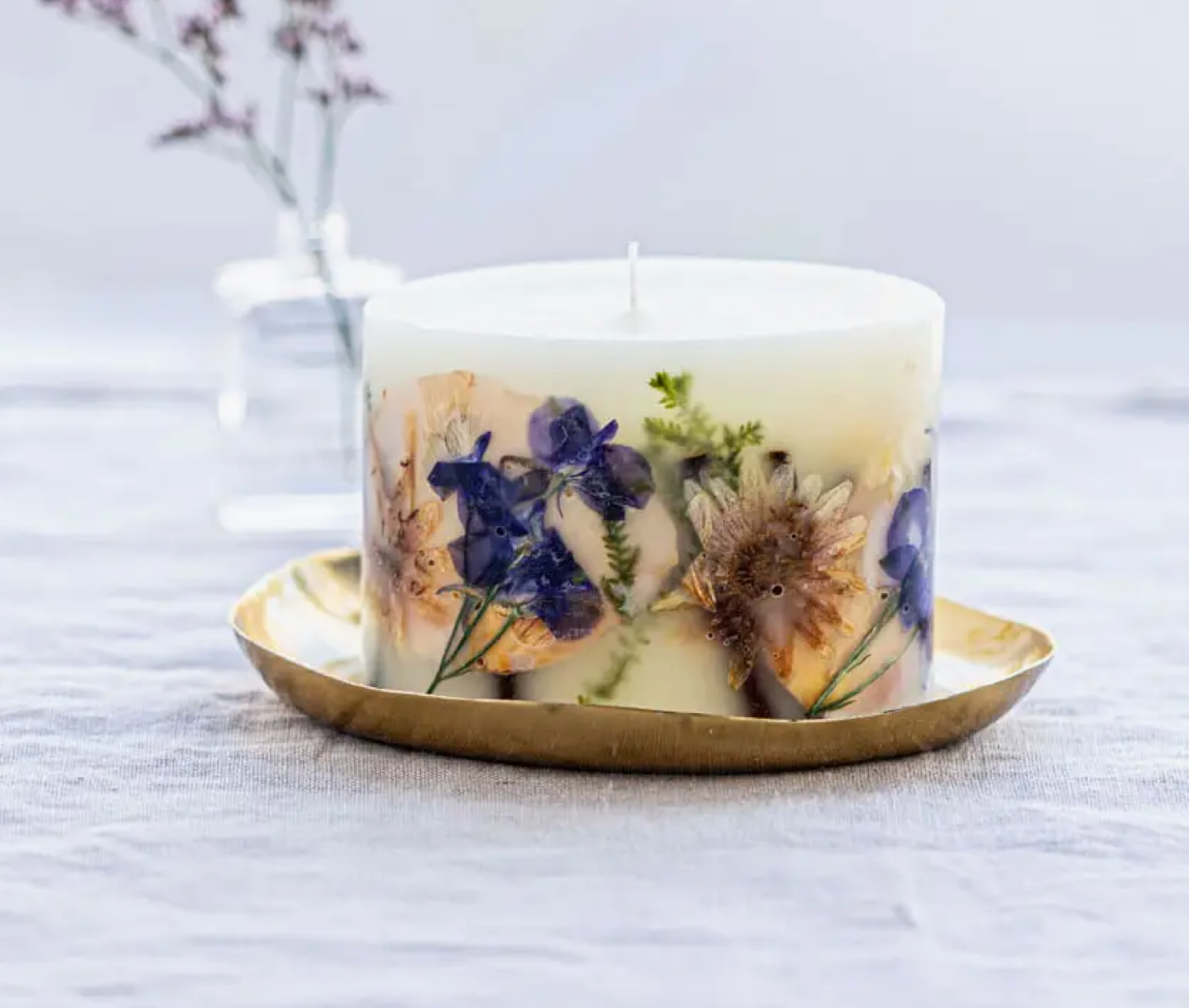 Experience the delicate beauty of the Vanilla Rain Petite Oval Botanical Candle, a perfectly crafted piece that combines natural elements with a luxurious fragrance. Adorned with hand-placed botanicals, this compact candle is both a decorative accent and a sensory delight.